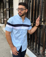 CAMISA AZUL TURQUÍ FRANJA ROJA