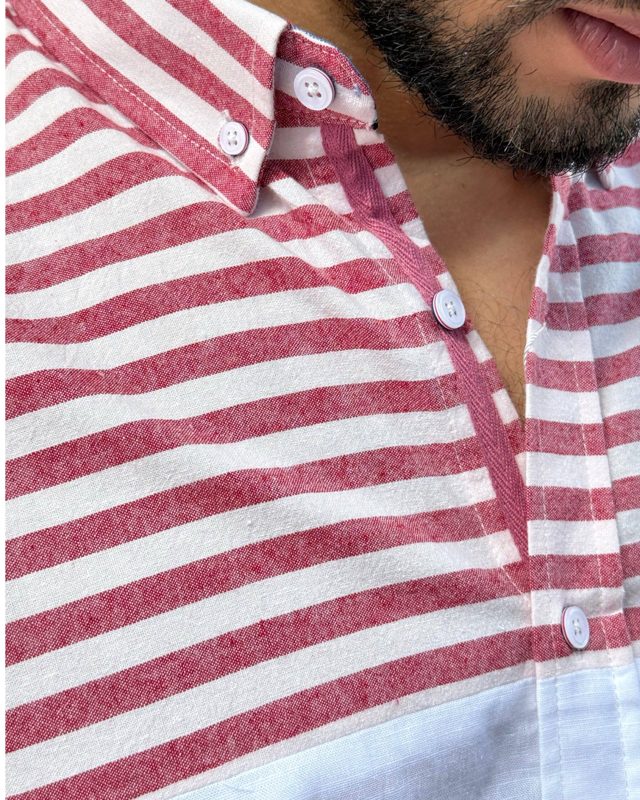 CAMISA LINO TMM FRANJA ROSADA